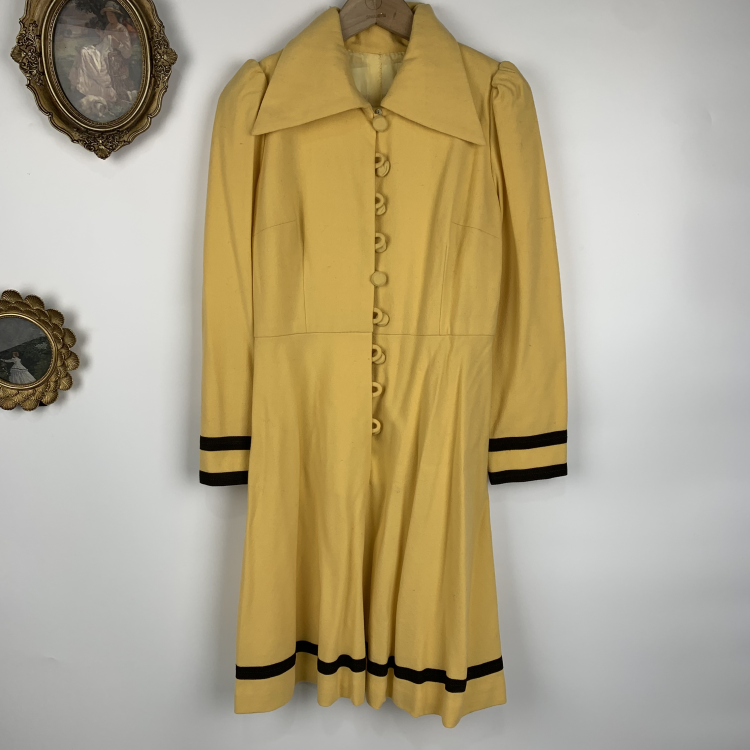 vintage古着日制羊毛连衣裙女士长款长袖复古花纹港风秋冬长裙512