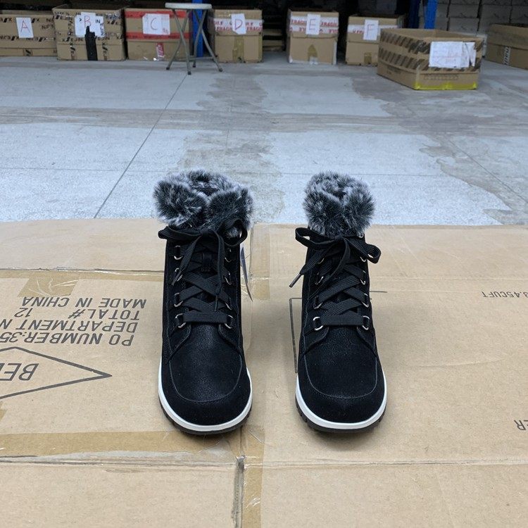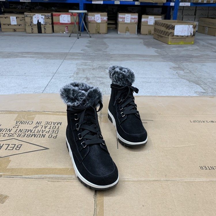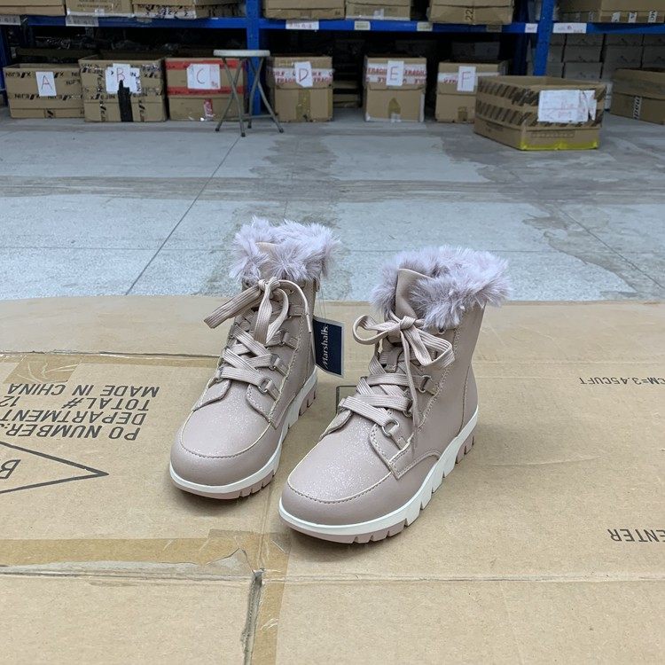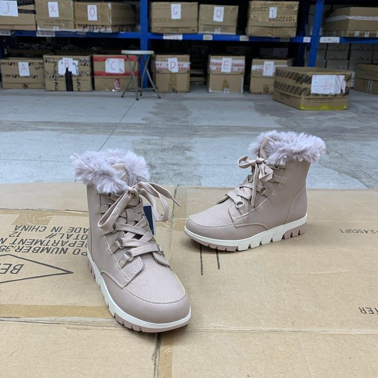 外贸原单时尚平底系带筒口拼接绒毛短靴可爱百搭分