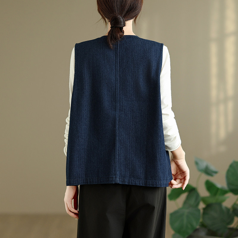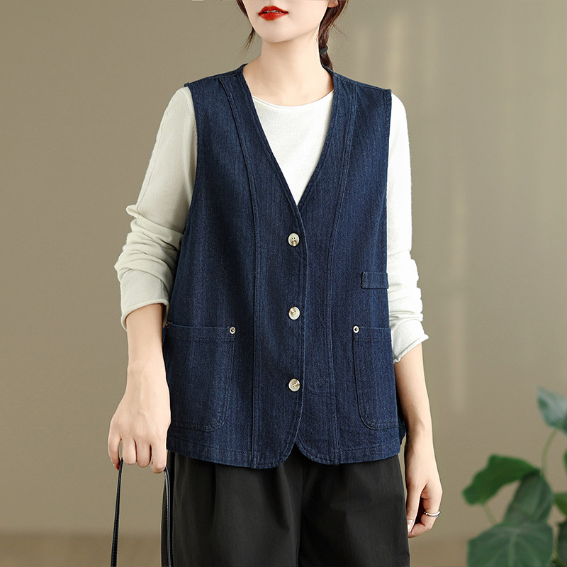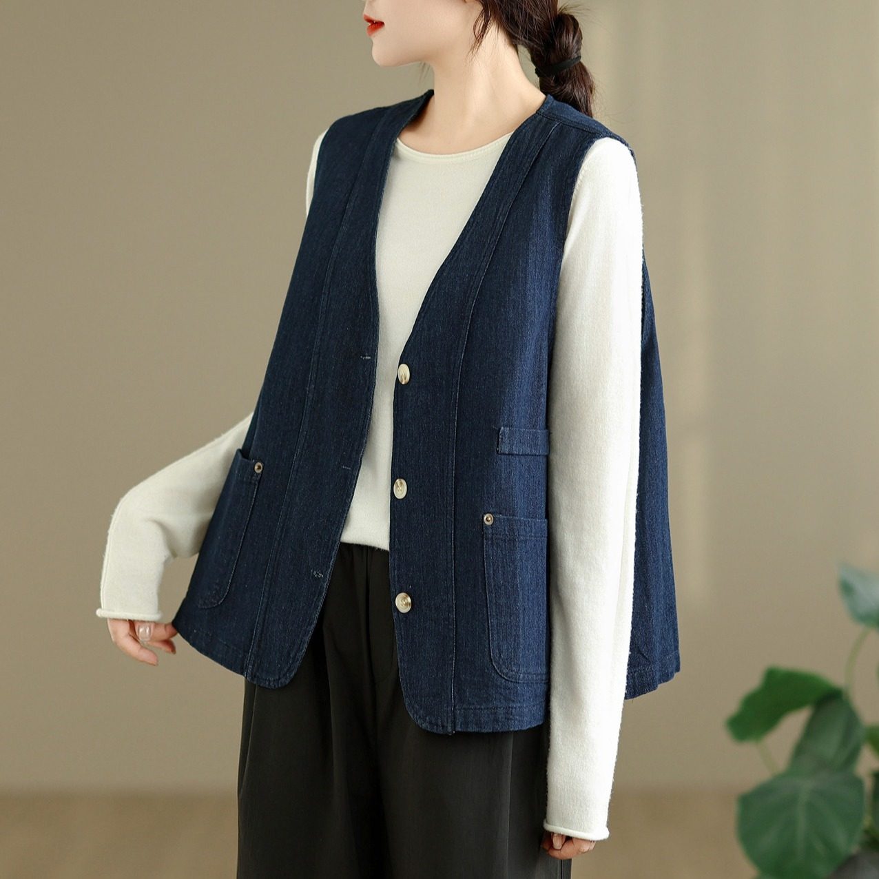牛仔马甲背心女士春季复古气质V领无袖坎肩韩版叠穿外搭马夹上衣