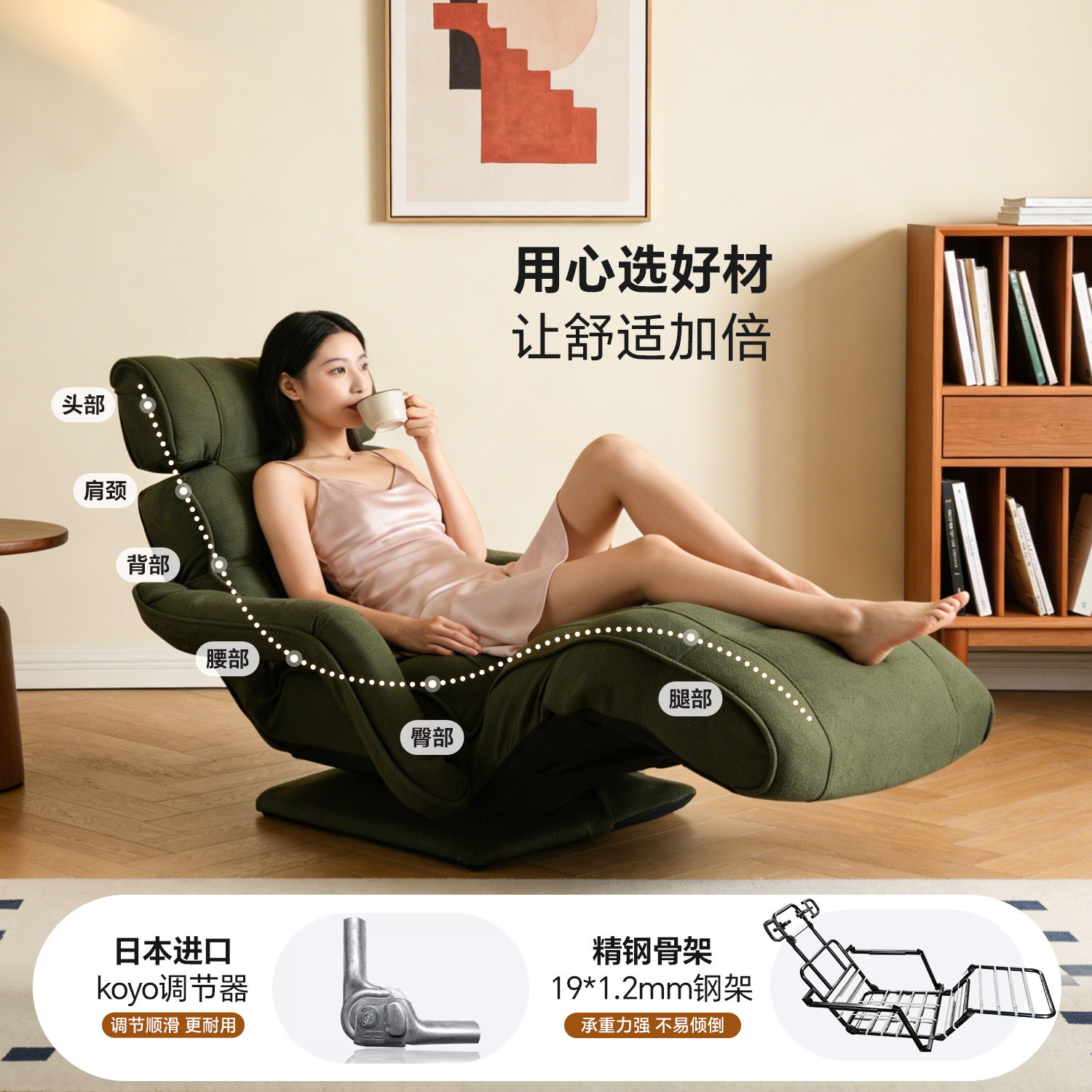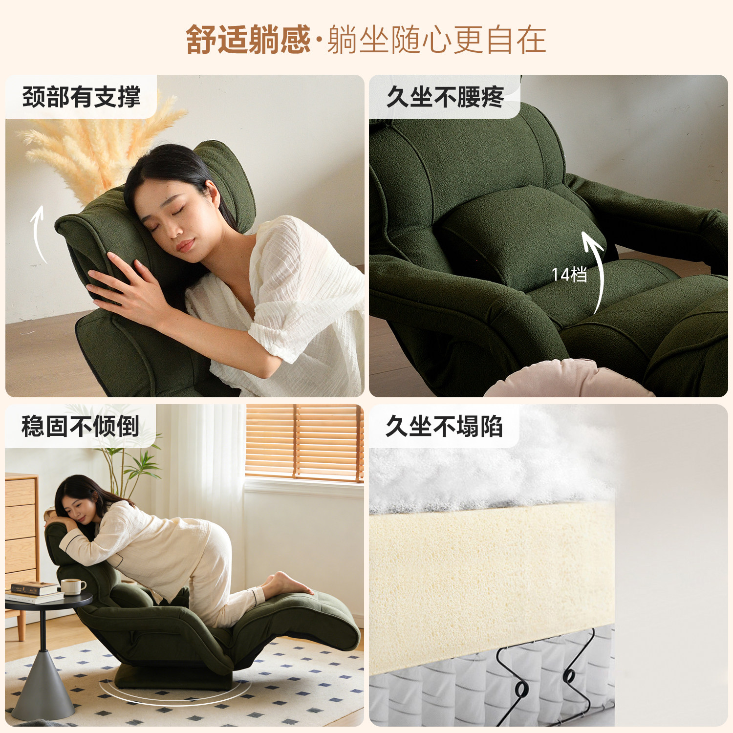 kino榻榻米懒人沙发可睡可躺坐垫靠背一体单人沙发卧室护腰神器