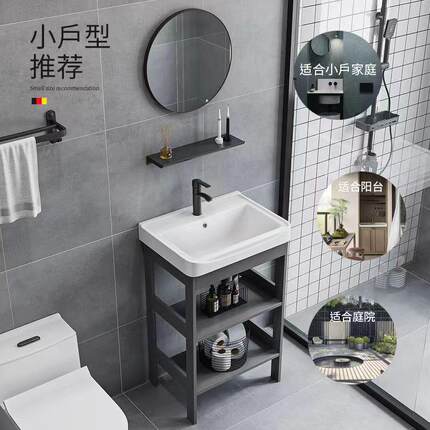 落地式洗手盆柜组合太空铝合金洗脸盆洗漱台池卫生间小户型洗兰之