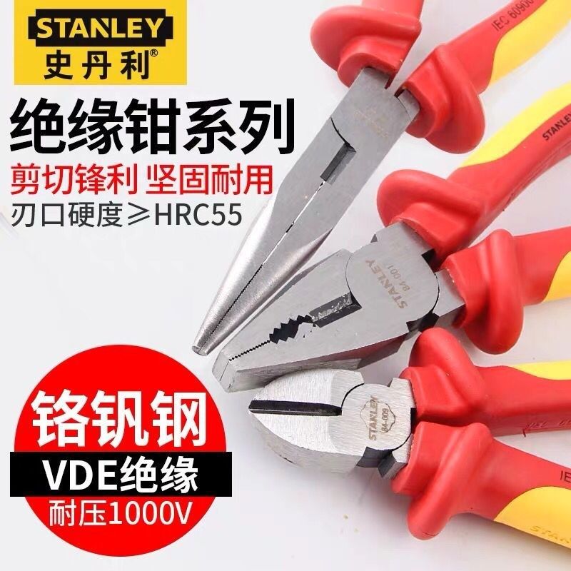 史丹利钳类工具绝缘电工钳钢丝钳尖嘴钳斜嘴钳顶切钳水泵钳剥线钳