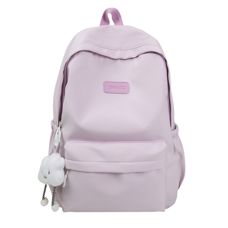 新款简约双肩包大容量休闲百搭背包纯色女大学生书包初中高中生