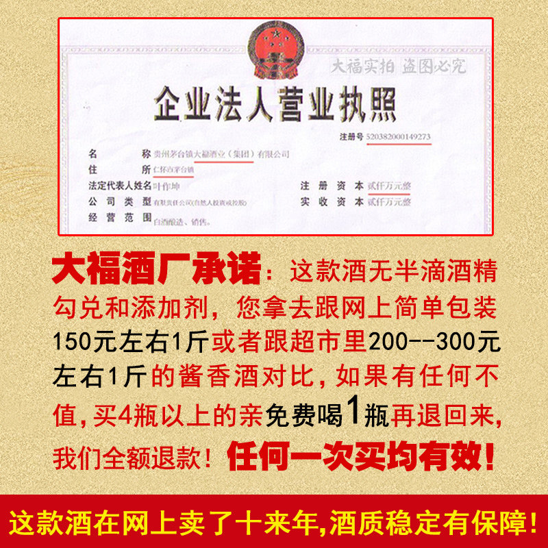 大福酒厂 酱香型白酒53度贵州国产自酿纯粮食原浆收藏纯坤沙老酒