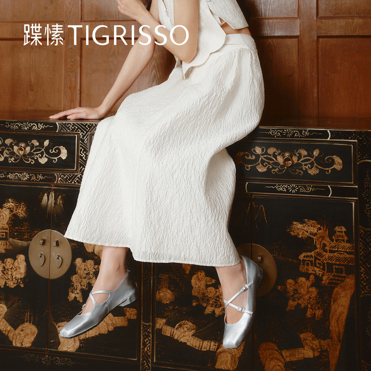 蹀愫2025年春季新款芭蕾女鞋方头平底单鞋银色玛丽珍鞋TA65109-12