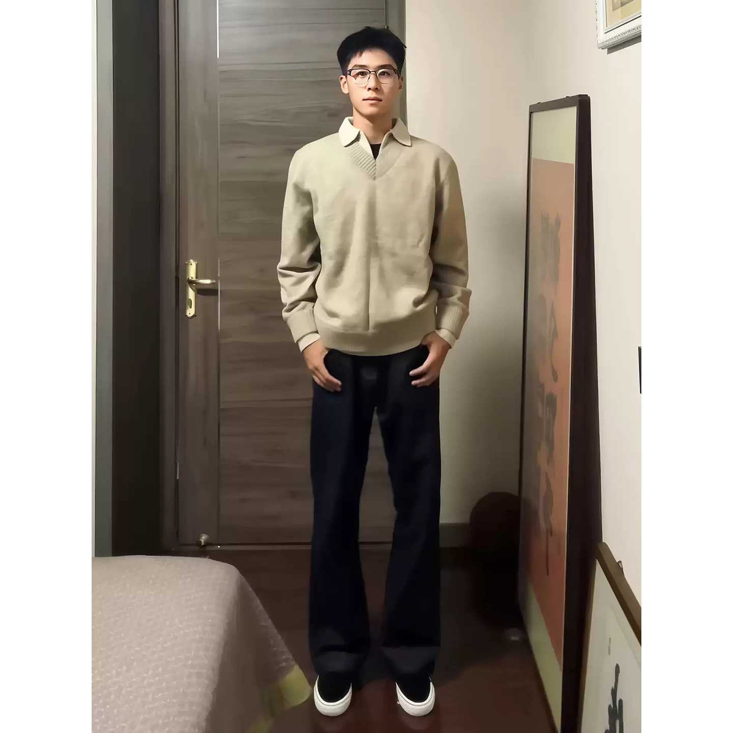 美式复古黑色微喇牛仔裤男款