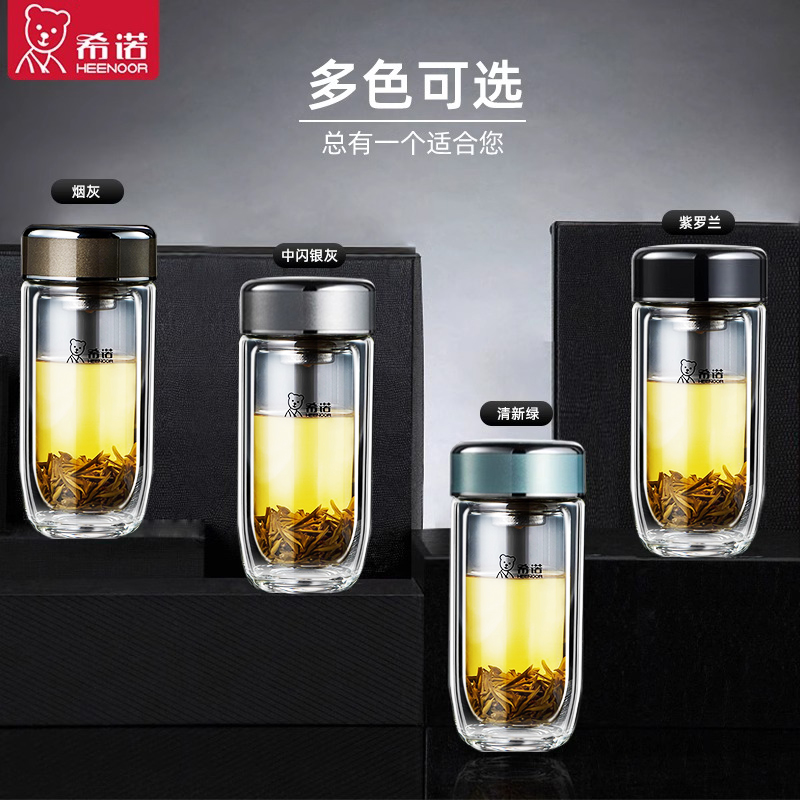 希诺抗菌玻璃杯大容量鹅蛋泡茶杯子男士双层防烫钛杯便携水杯定制