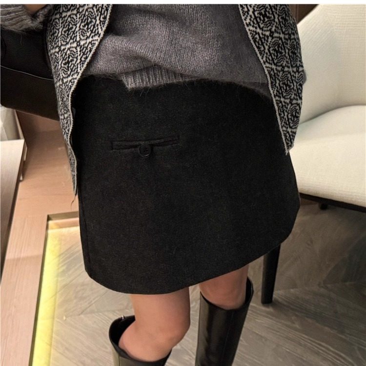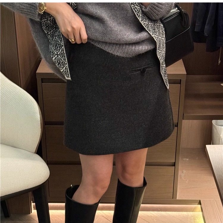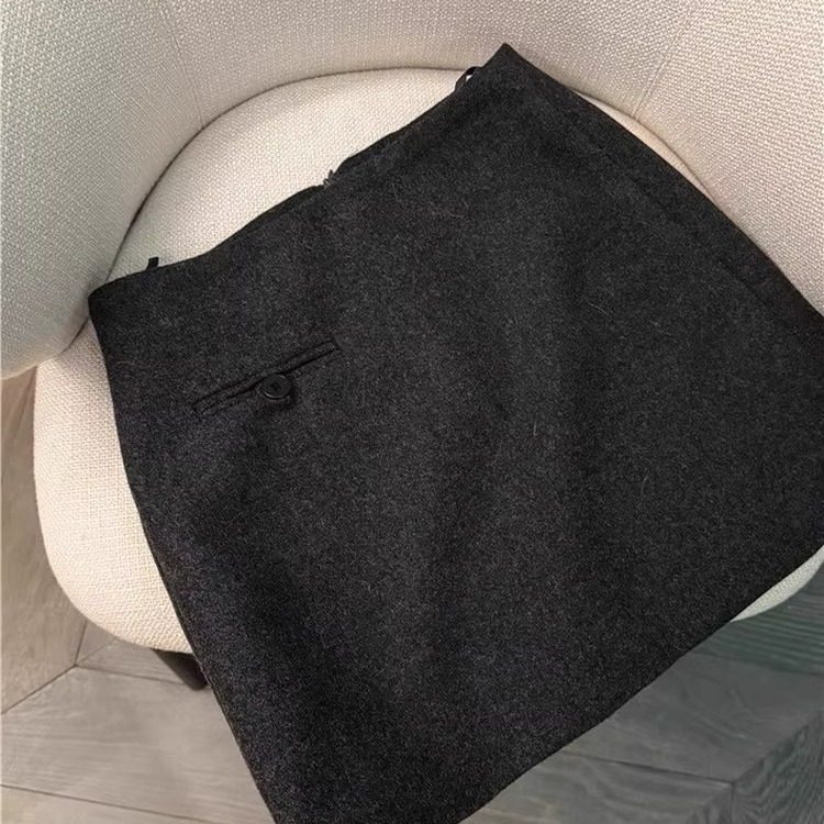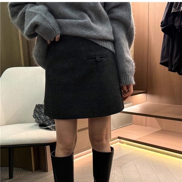 羊毛呢半身裙女秋冬新款显瘦时尚高腰包臀裙防走光A字深灰色短裙