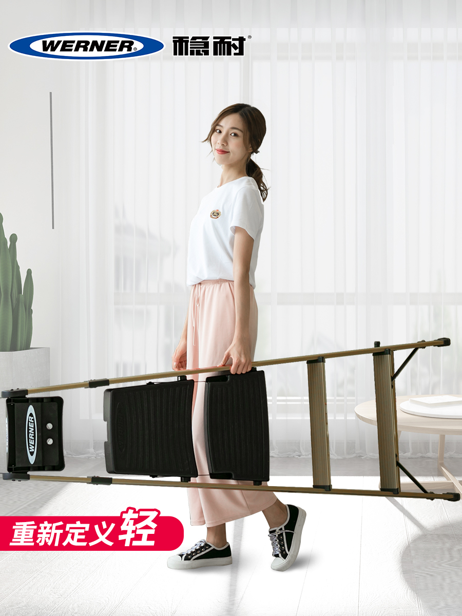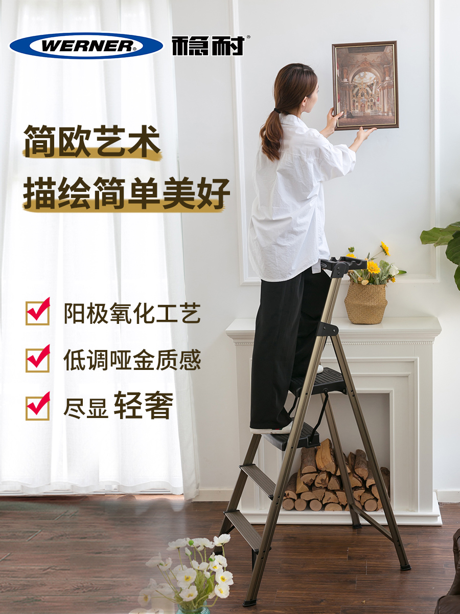 稳耐梯子家用梯子折叠人字梯 铝合金梯宽踏板防滑四步梯234T-3CN