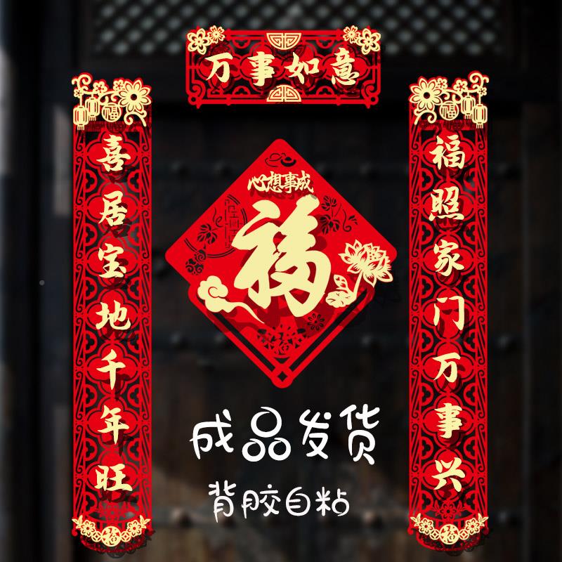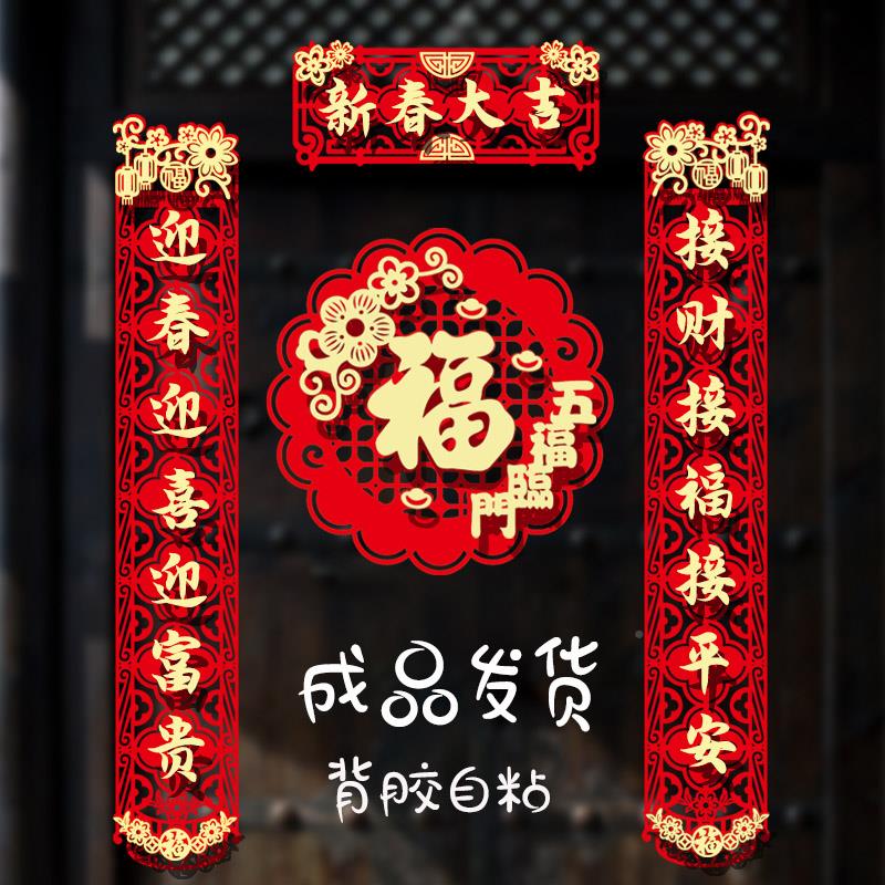 新款2023兔年对联春节新年大门立体家用过年春联装饰植绒布福字贴