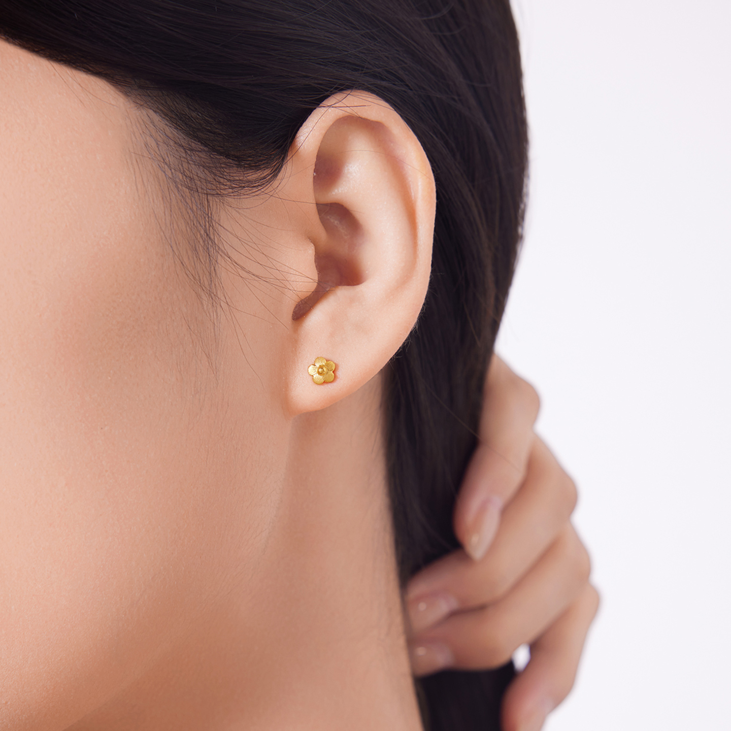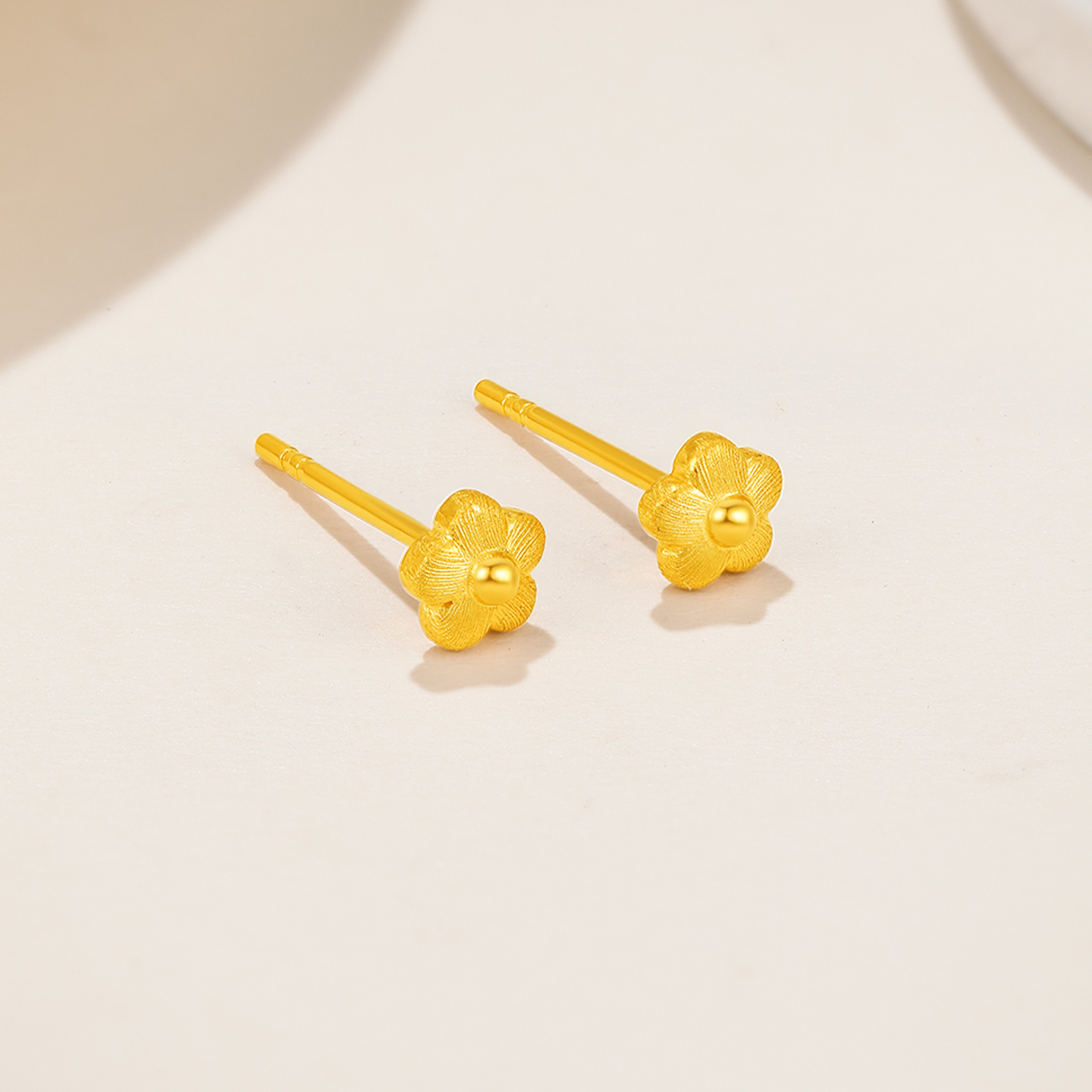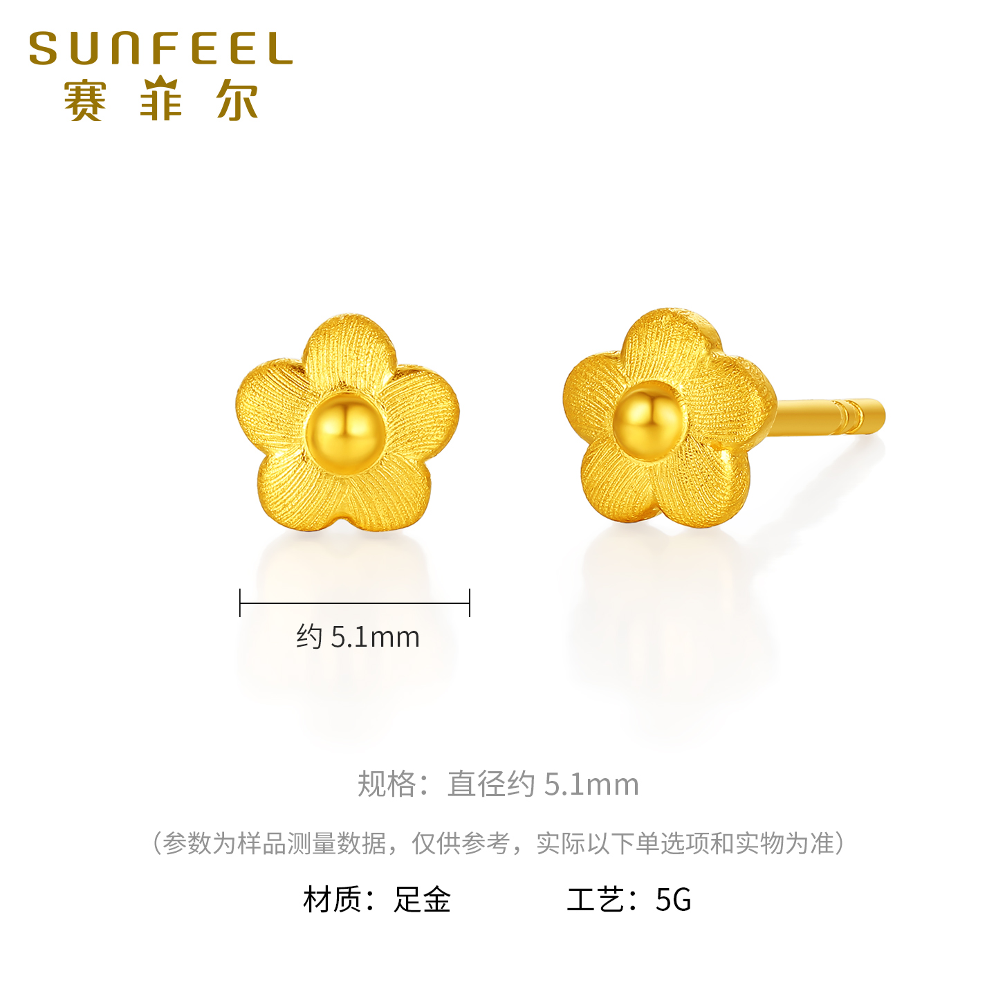 赛菲尔黄金耳饰足金5G金简约精致小花耳钉耳针节日送礼