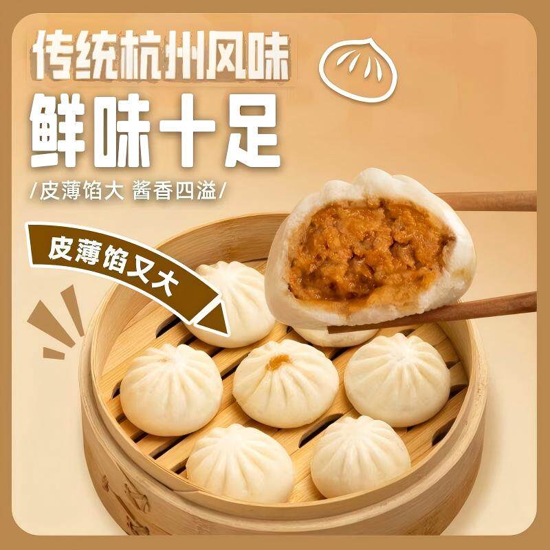 杭州风味老面鲜肉小笼包加热即食早餐半成品新鲜包子速食袋装食材