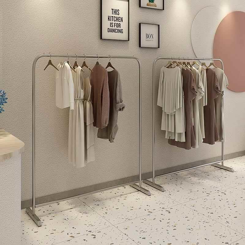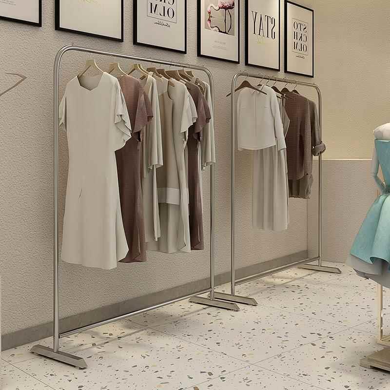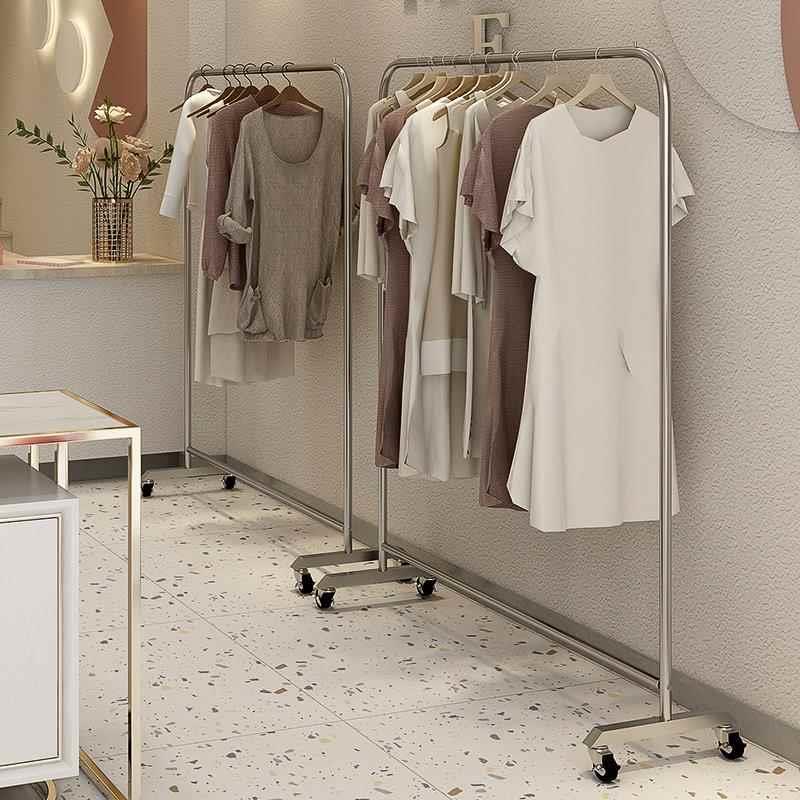 不锈钢服装店展示架落地上墙陈列专用女装挂衣架单杆货架移动轮