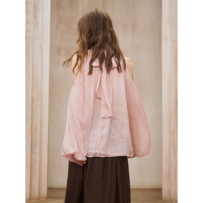 Miora Studio法式复古飘带上衣优雅气质花苞背心吊带蕾丝拼接衬衫