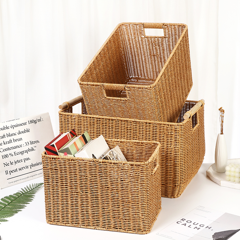 仿藤编茶几收纳筐 简约电视柜储物篮子 桌面零食收纳篮橱柜整理篮