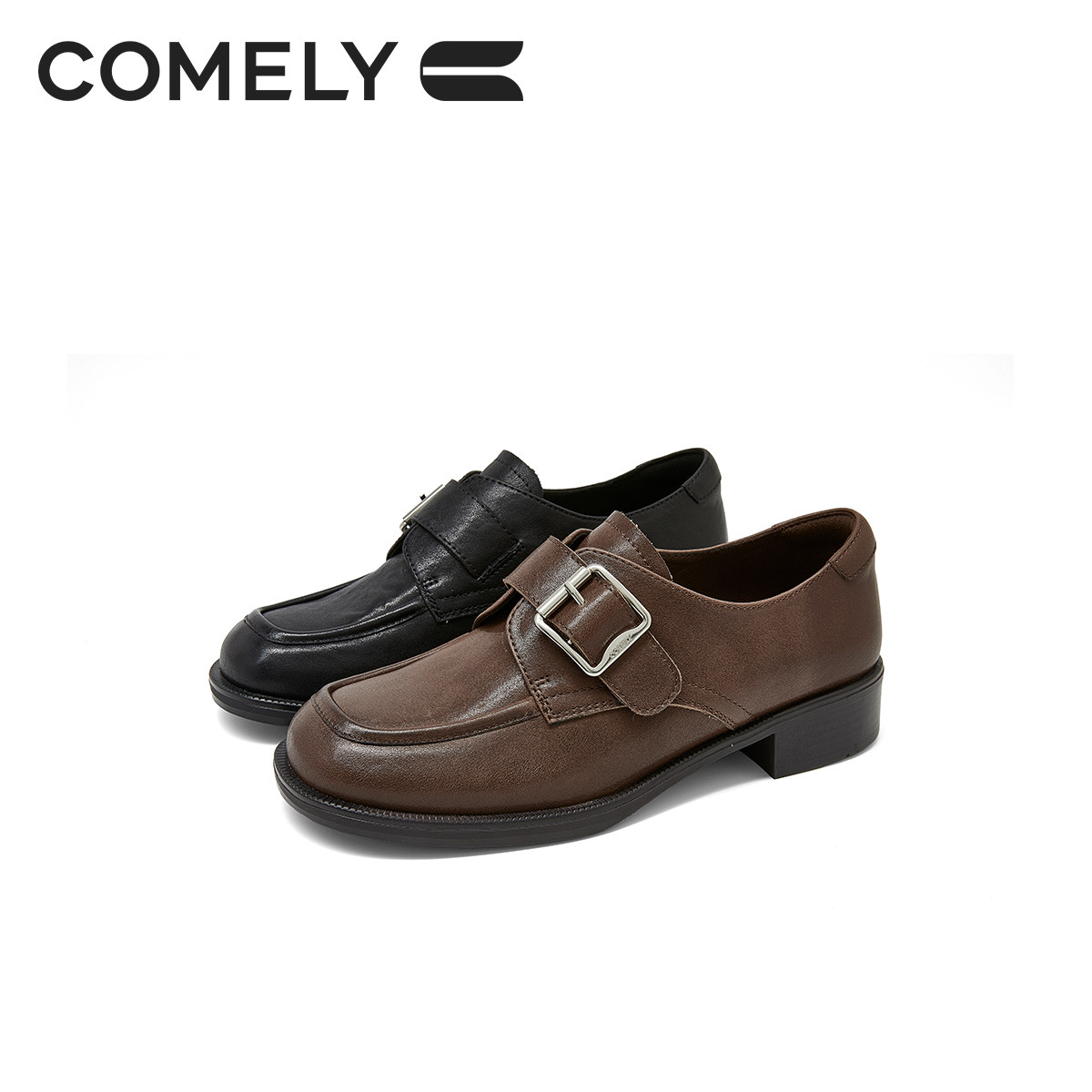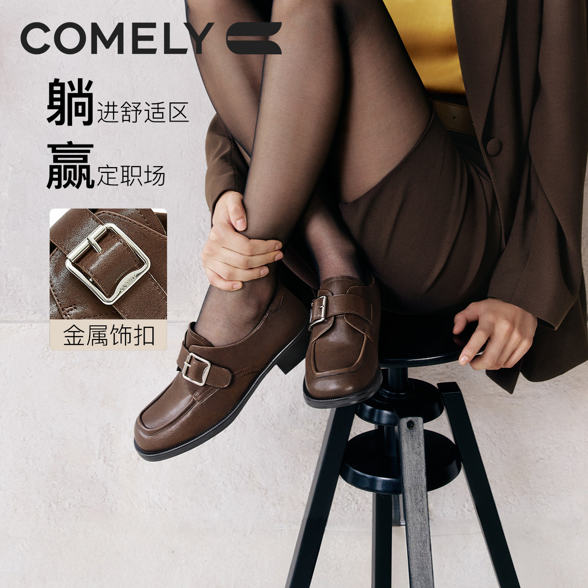 康莉真皮小皮鞋女2025秋季新款低跟乐福鞋魔术贴深口单鞋商场同款