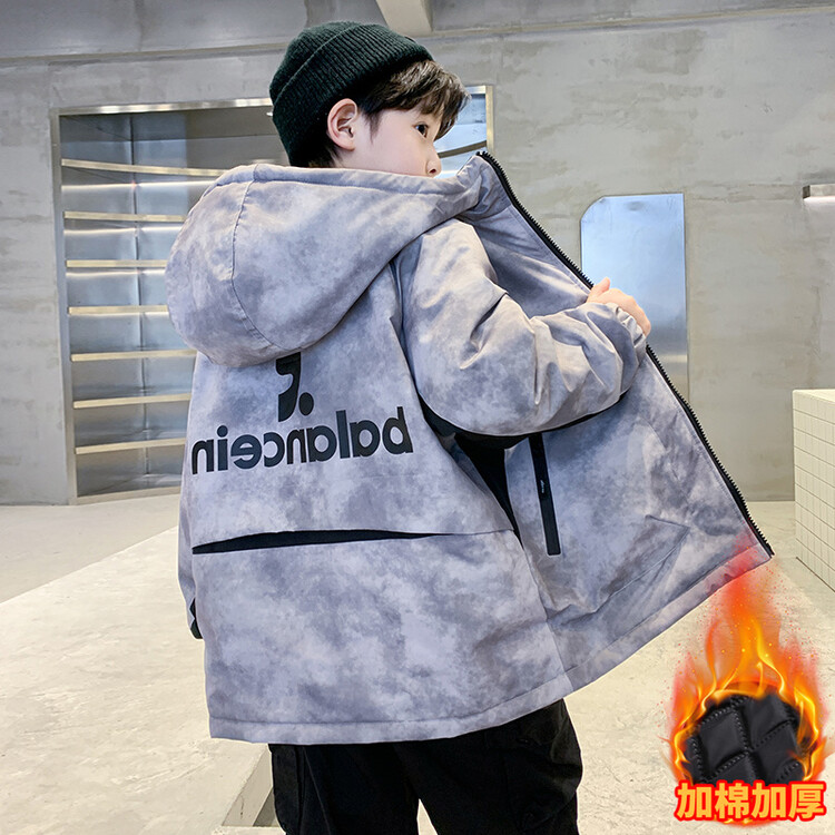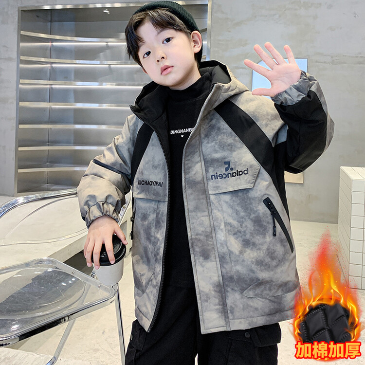 男童加厚保暖棒球服外套冬装帅气男孩短款夹棉夹克二棉连帽棉衣潮