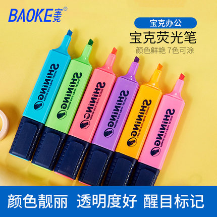 宝克MP4904荧光笔记号笔学生用斜头彩色笔办公学习用品划重点七色