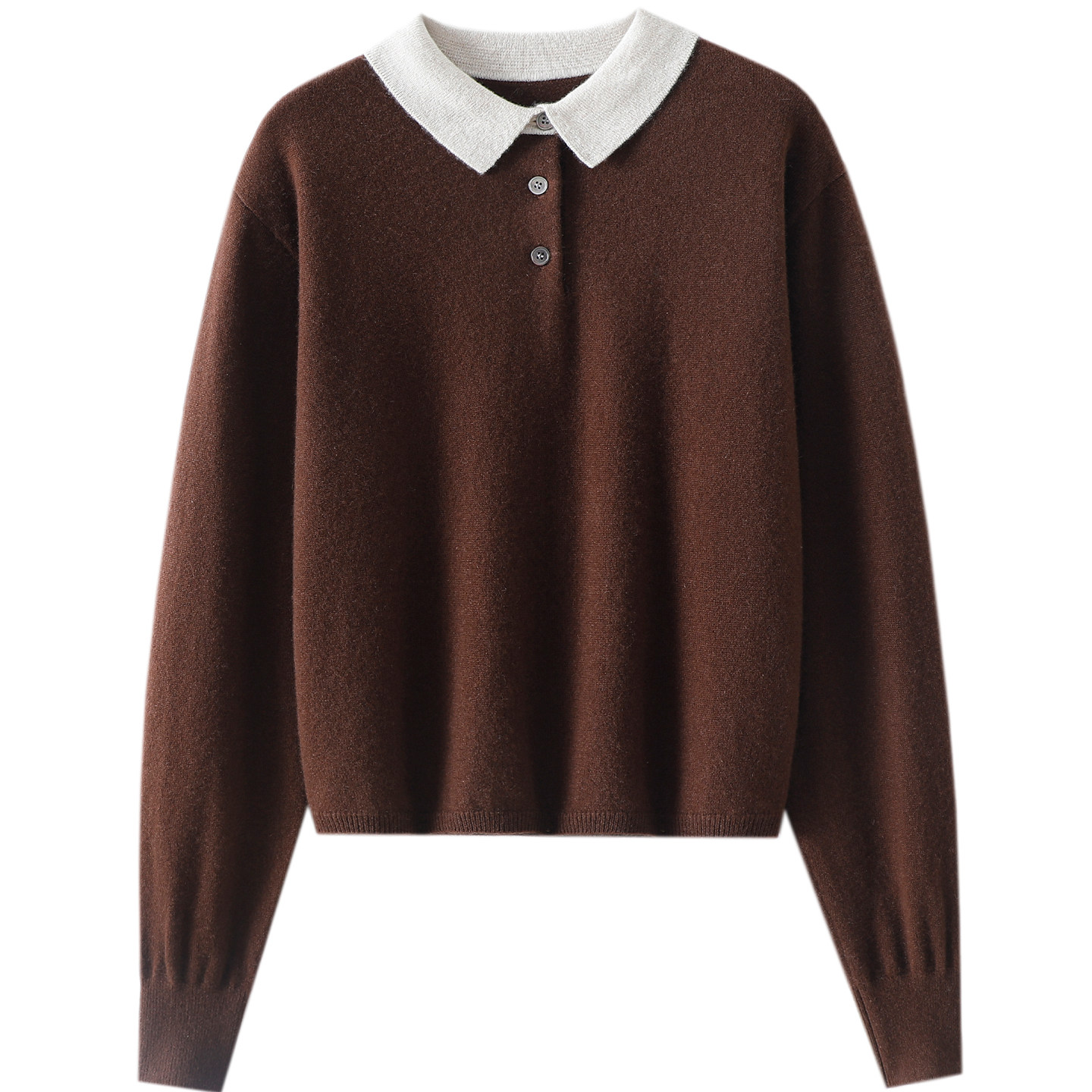 上身效果好气质!新款拼色100%纯山羊绒衫女POLO领纯羊绒毛衣秋冬