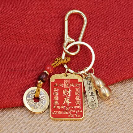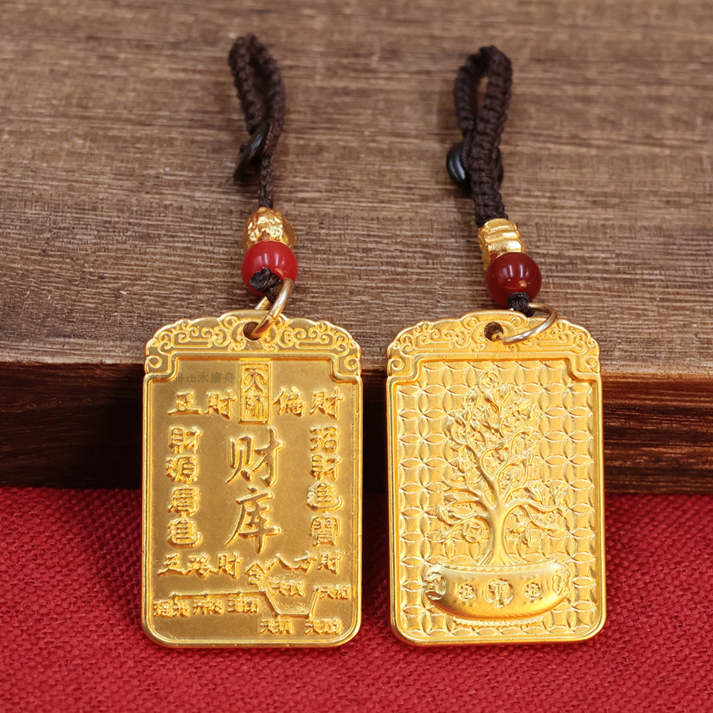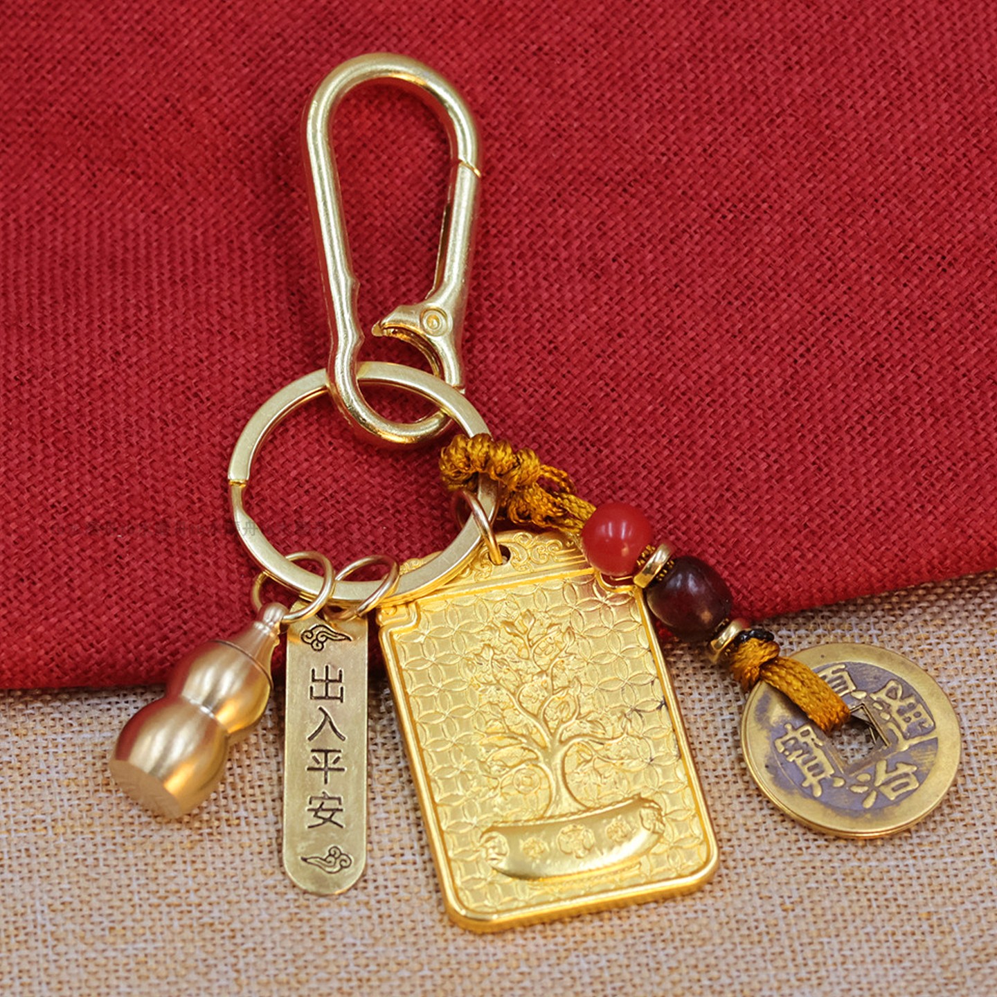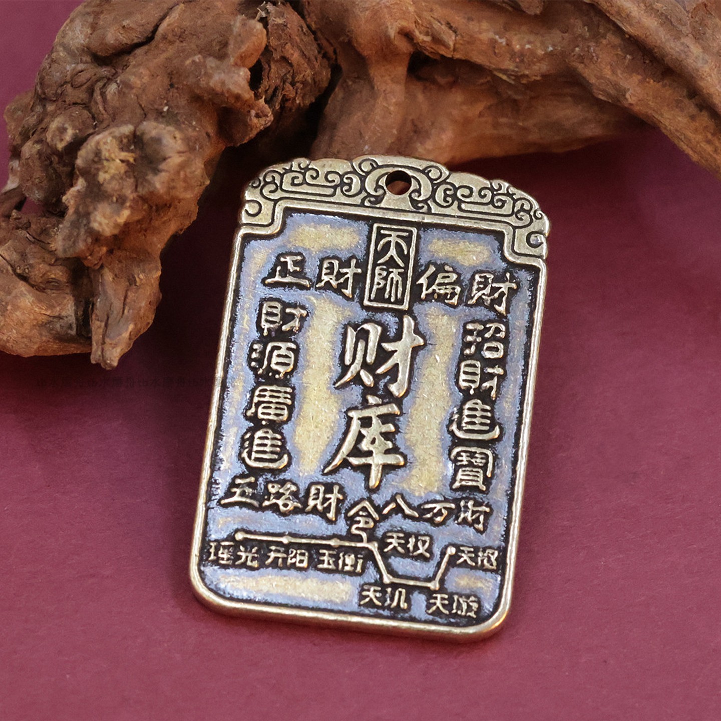 2025开财库挂件纯黄铜汽车钥匙扣吊坠补财补库铜牌子五路财摇钱树