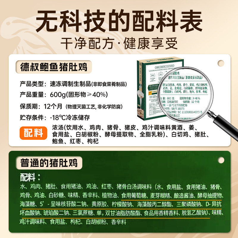 德叔鲍鱼正宗胡椒猪肚鸡加热即食半成品预制菜高端年货火锅料理包