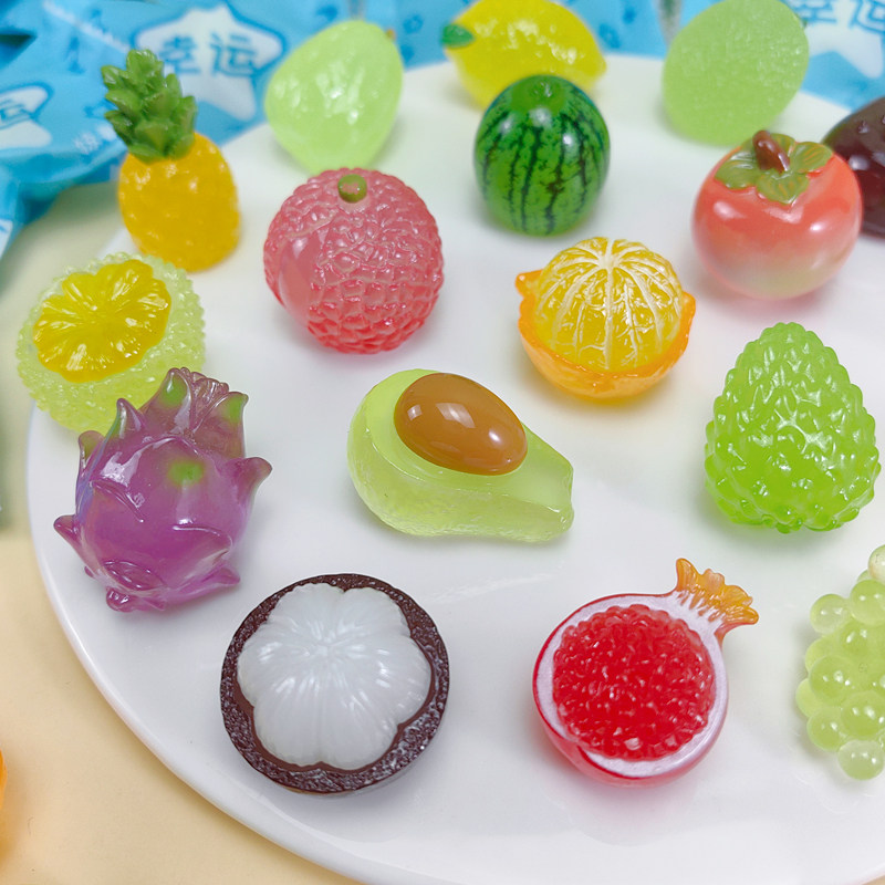 创意夜光大水果萌粒盲袋仿真写实苹果山竹榴莲食玩夜间发亮小摆件