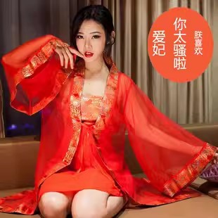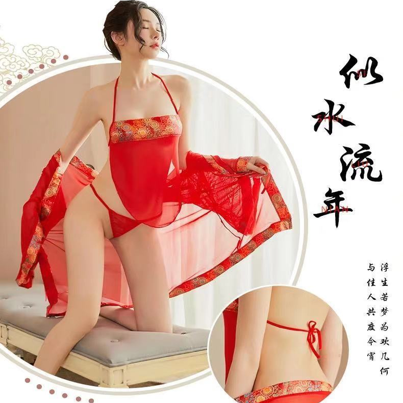 情趣性感制服特大码200斤内衣缎面红色诱惑镂空肚兜宫廷汉服旗袍