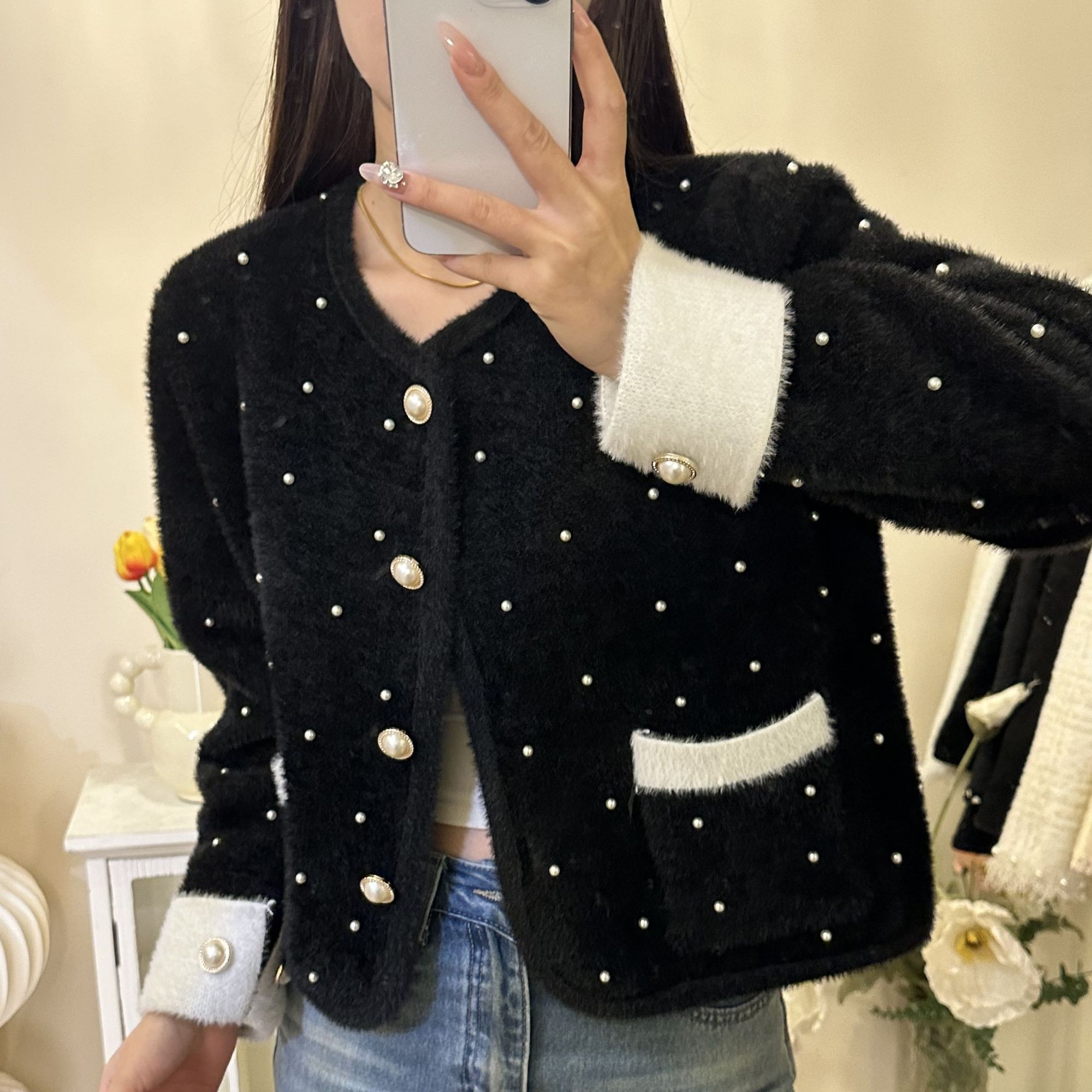 仿水貂绒小香风开衫外套女