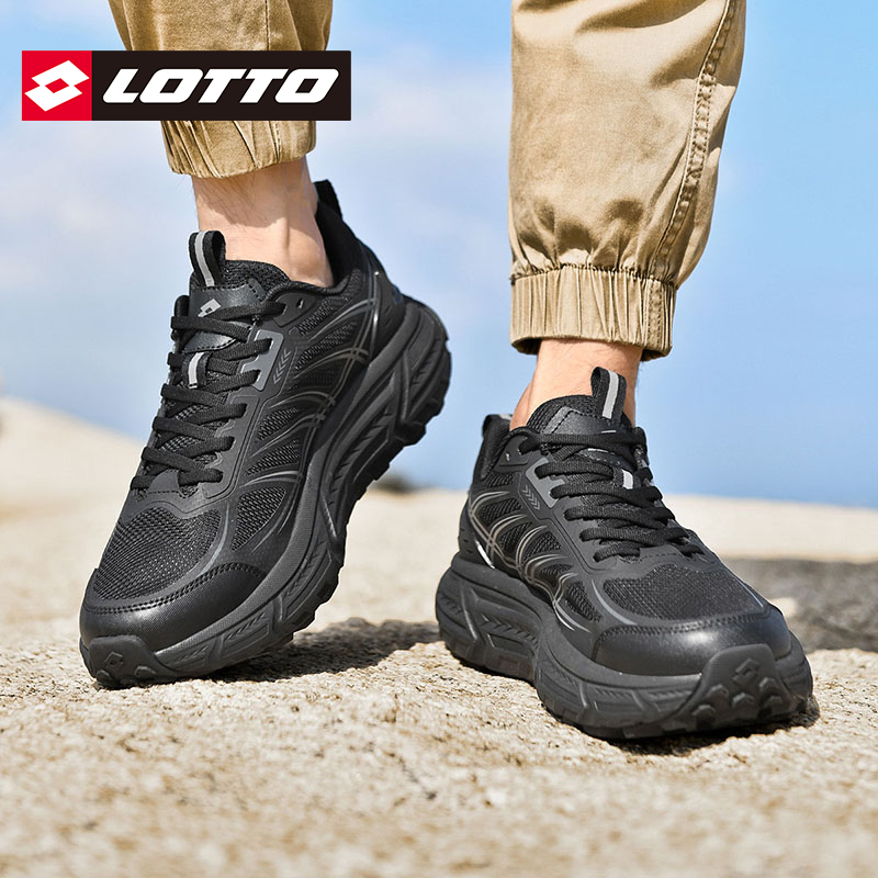 LOTTO乐途男鞋黑色网面厚底运动鞋秋冬2025新款户外徒步登山鞋女