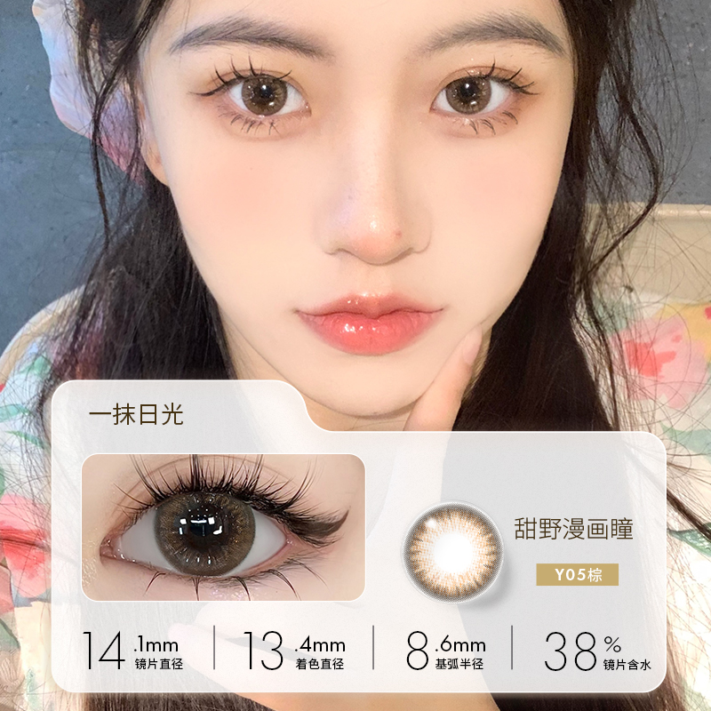miomi米欧米美瞳女半年抛自然混血双色棕灰大小直径彩色隐形眼镜