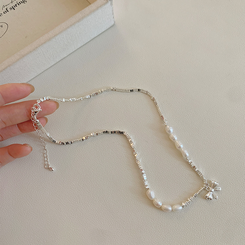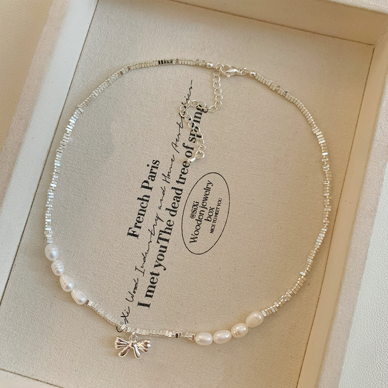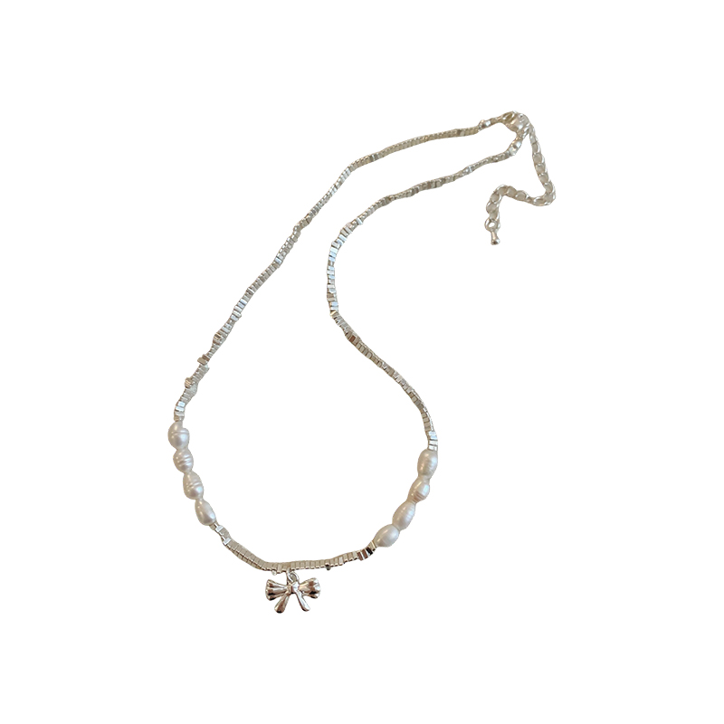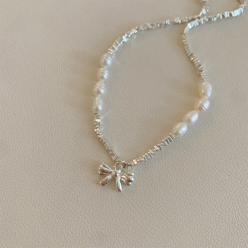 碎银子蝴蝶结珍珠项链配饰女款2025新款高级感轻奢小众锁骨链颈链