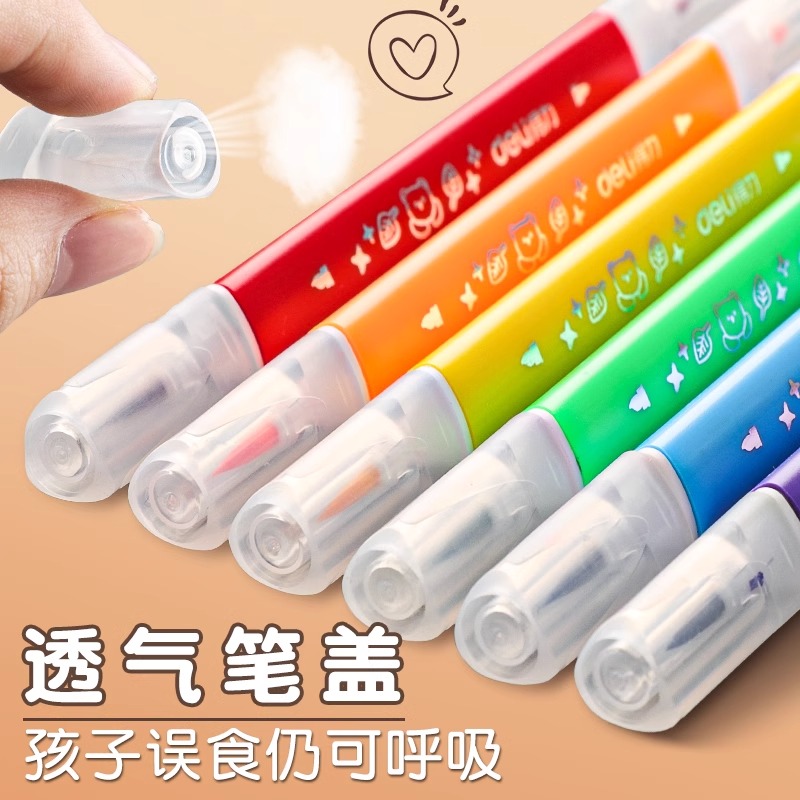 得力软头水彩笔双头画笔儿童可水洗无毒画画彩笔硬头幼儿园小学生