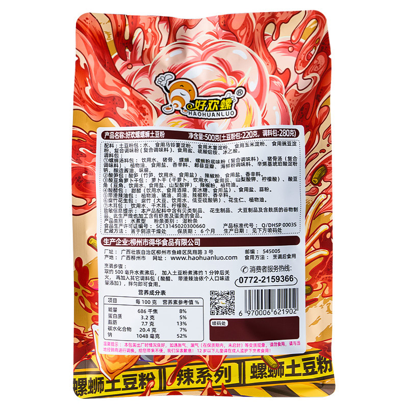 好欢螺螺蛳土豆粉500g Q弹爽滑 1分钟速煮 螺蛳粉酸辣方便速食
