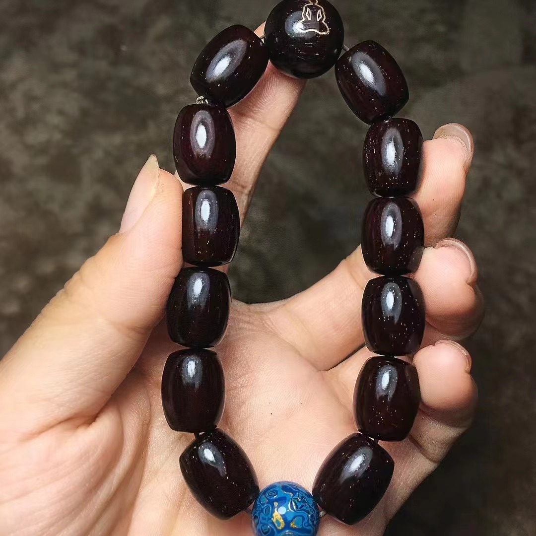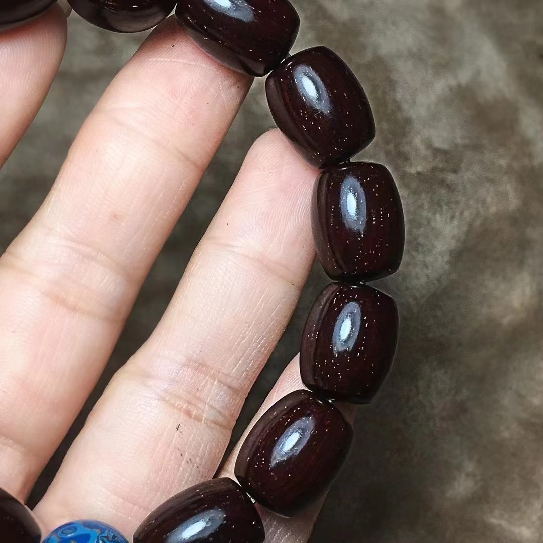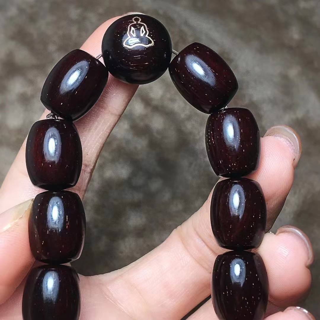 小叶紫檀1.2/1.5桶珠佛珠文玩手串念珠情侣手链趣味收藏送礼佳品