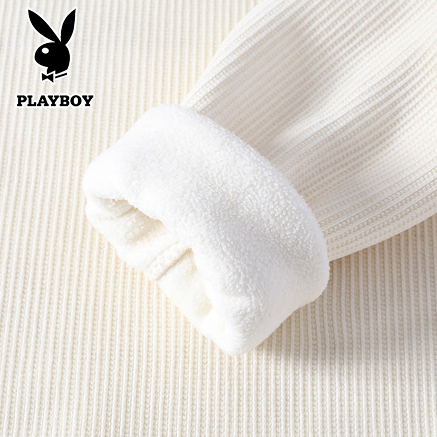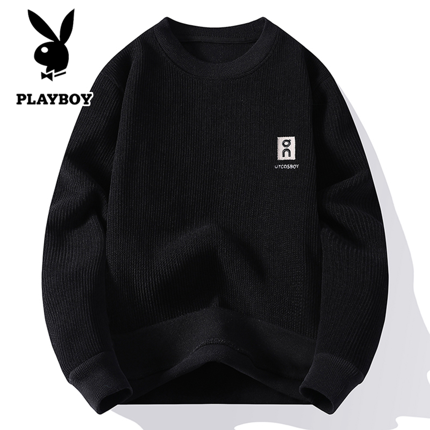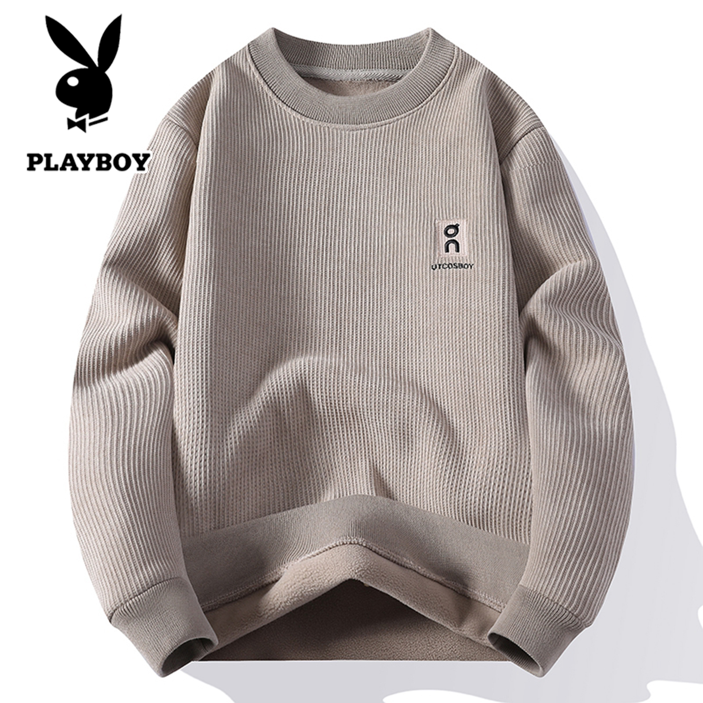 花花公子圆领毛衣男士针织衫秋冬季一体绒保暖内搭加绒加厚打底衫