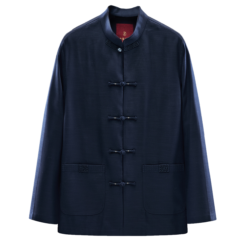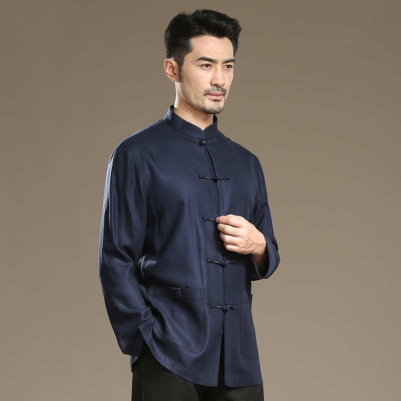 中老年唐装男长袖宽松上衣爸爸装中式立领盘扣休闲中国风刺绣衬衫