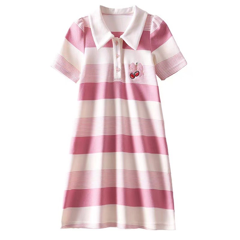 女童夏装连衣裙2025新款洋气童装polo长款T恤裙大童条纹夏季裙子