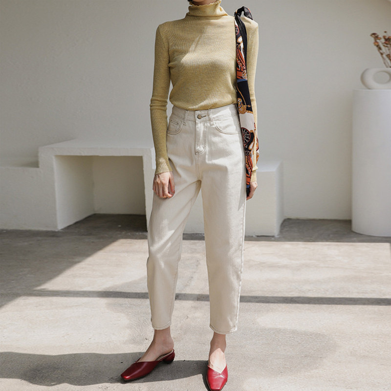 梨型身材米白色牛仔裤女九分2025秋冬加厚高腰宽松显瘦直筒萝卜裤