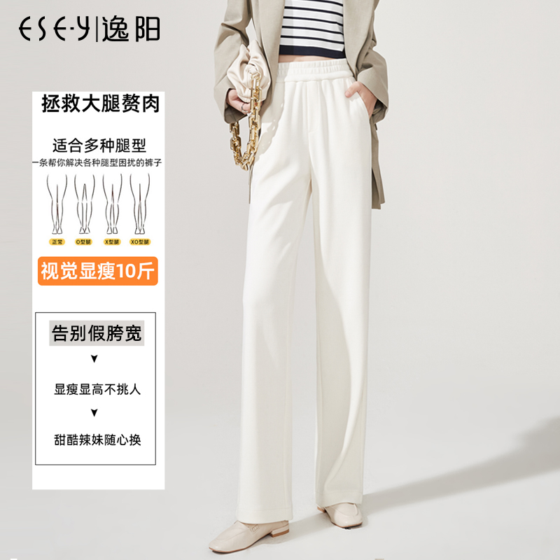 逸阳2025秋冬新款白色雪尼尔高腰直筒裤女宽松显瘦加厚垂顺阔腿裤