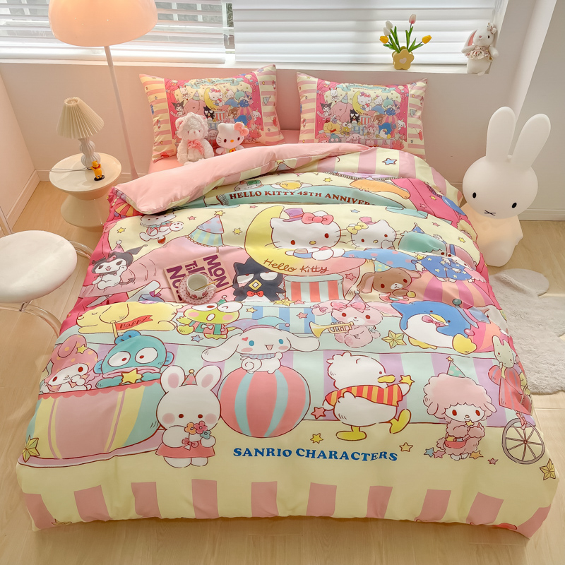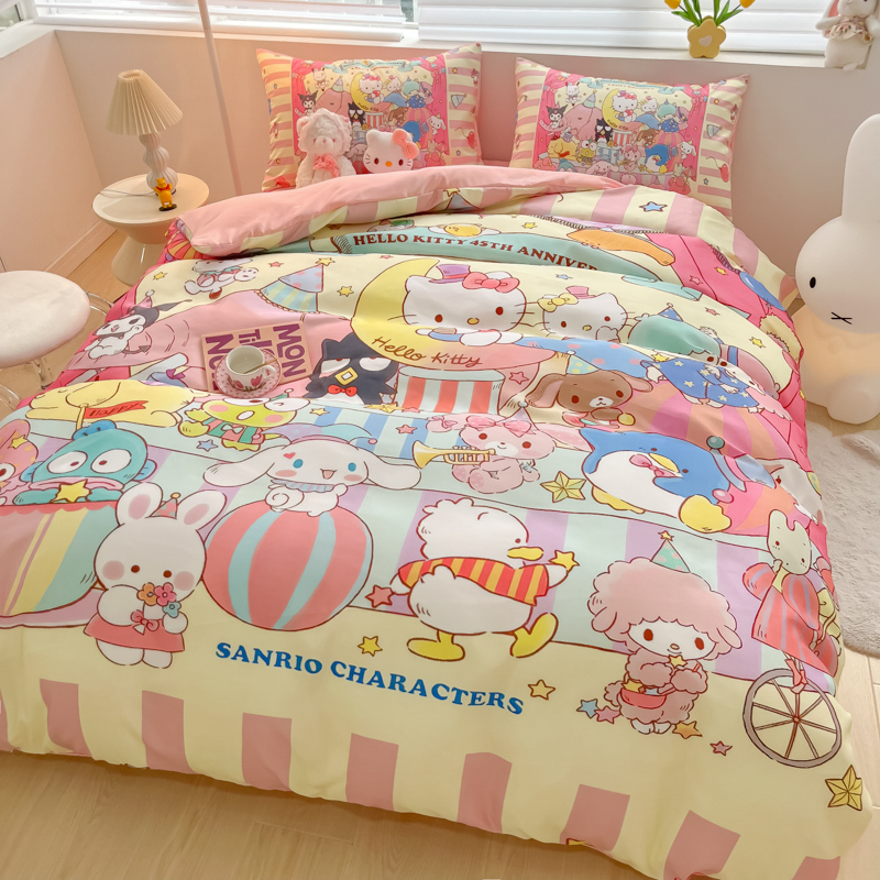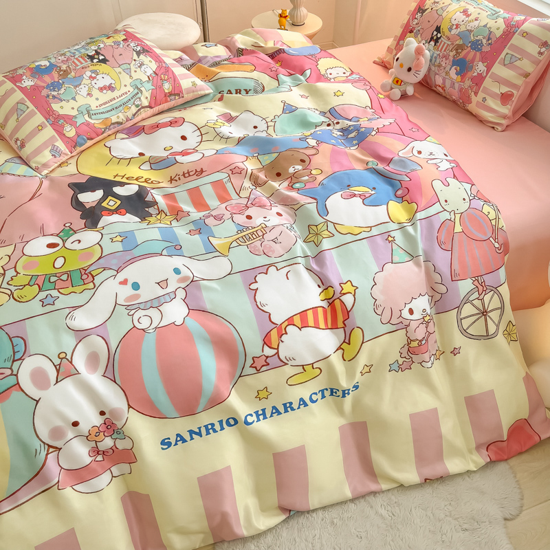 三丽鸥床品水洗真丝春夏四件套卡通儿童冰丝被套床单床笠丝滑裸睡