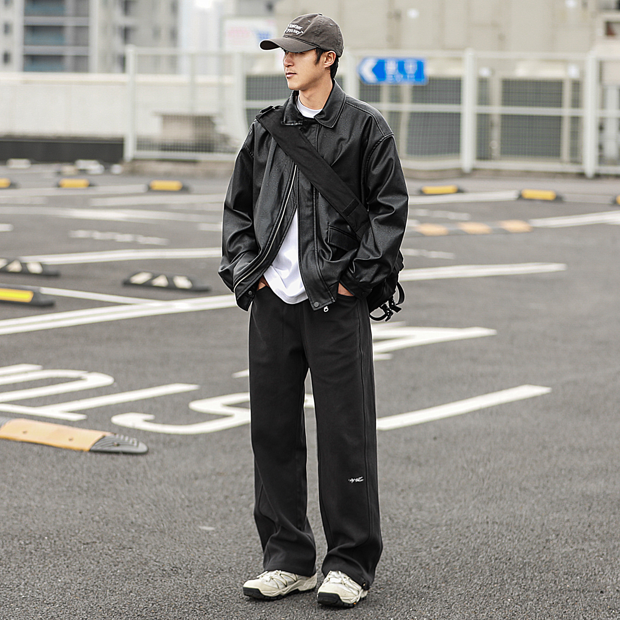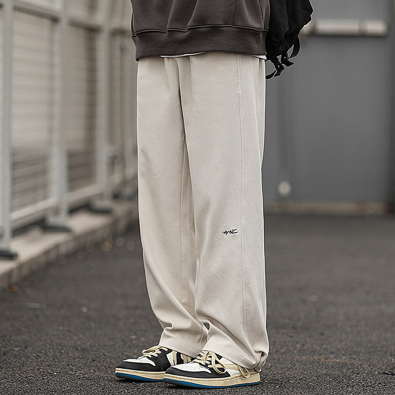 340g重磅嘿马七作日系复古春秋款男士分割刺绣薄款阔腿休闲卫裤潮