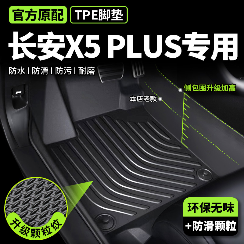专用于长安x5plus脚垫tpe全包围汽车脚垫后备箱垫主驾驶脚垫地垫-