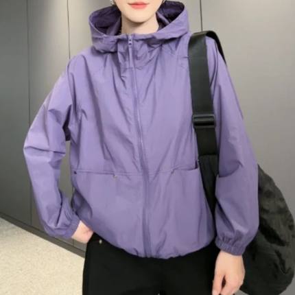 夏薄款防晒衣连帽拉链短款外套时尚洋气休闲宽松冲锋衣开衫外套女