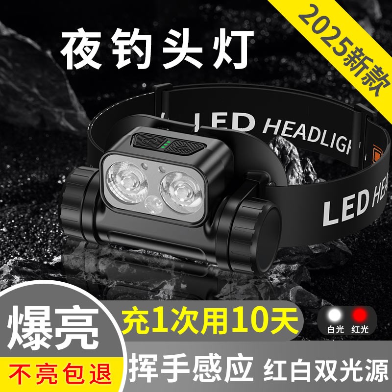 猫司令869头灯钓鱼感应超长续航100小时新款强光超亮夜钓红光