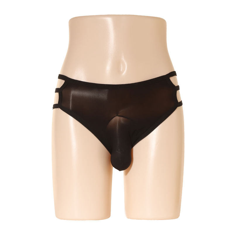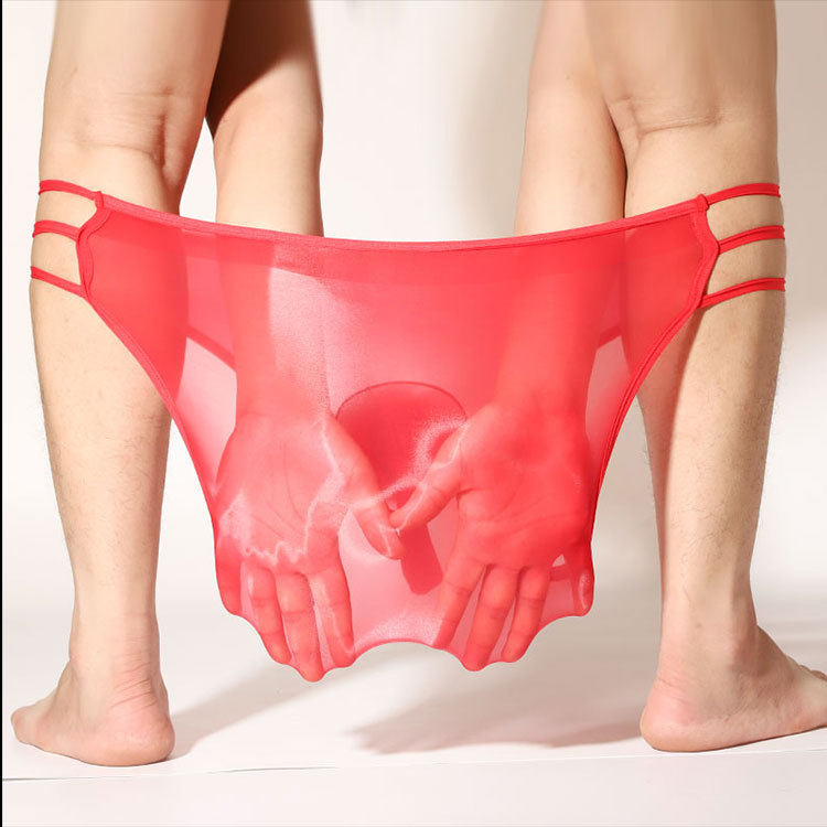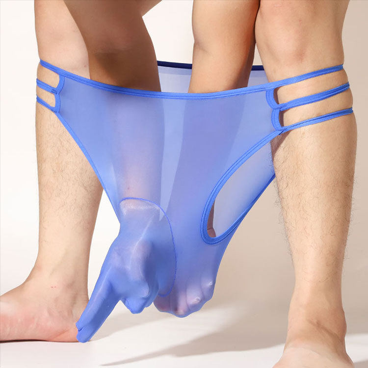 大码枪弹分离内裤男生滑溜溜裸感油光丝袜JJ套大象三角裤超薄透明