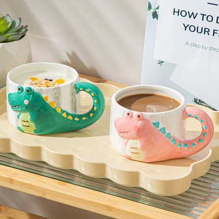 卡通可爱陶瓷马克杯子儿童早餐杯带勺情侣一对水杯高颜值可微波炉