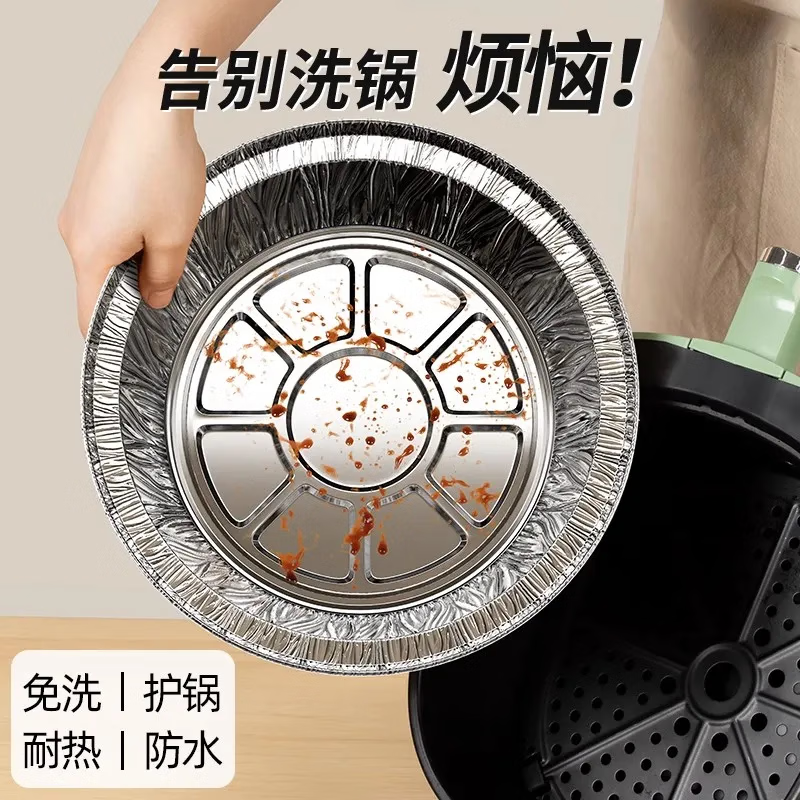 空气炸锅专用锡纸碗盘圆形加厚家用铝箔盘烤箱食用烘焙食品级耐高
