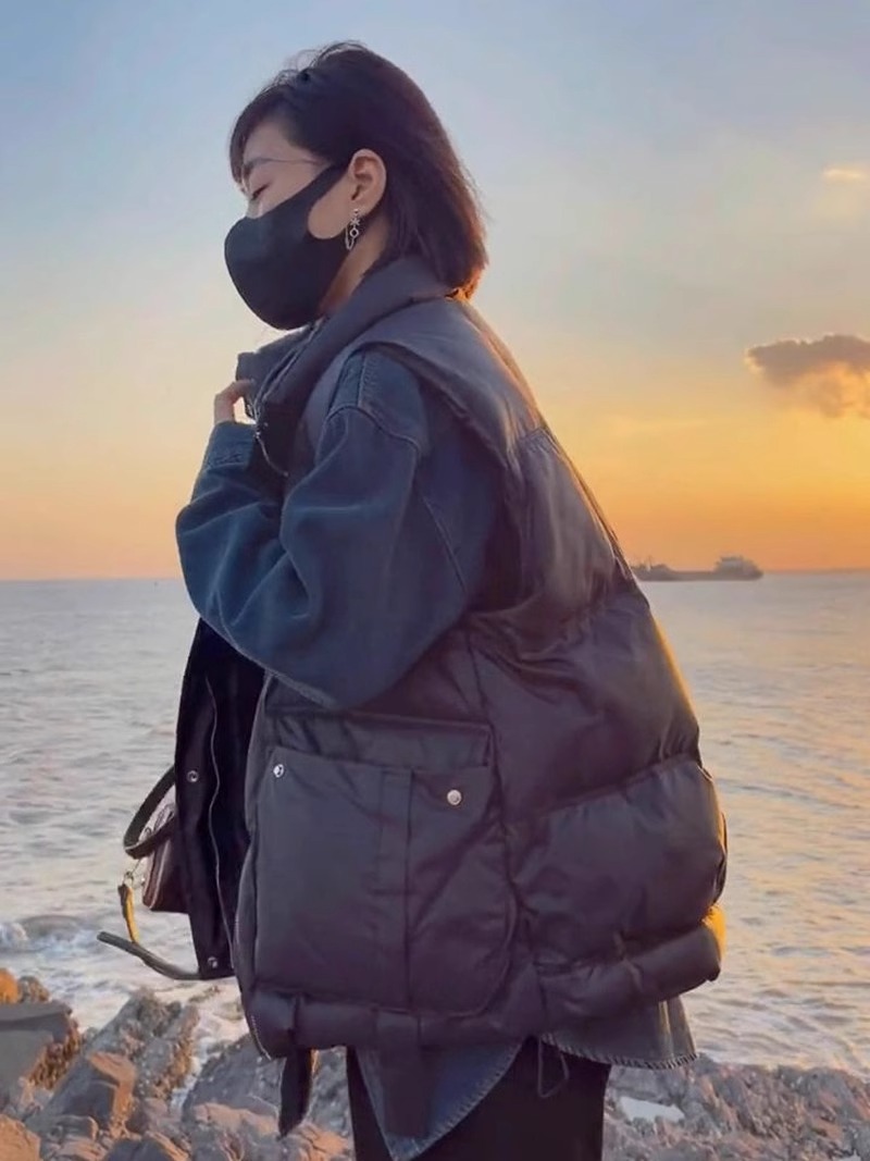 欧货羽绒棉马甲女短款2025秋冬新款韩版宽松口袋背心立领马甲外套
