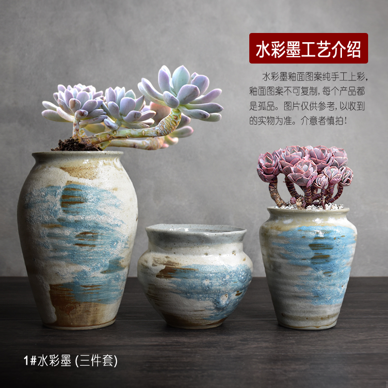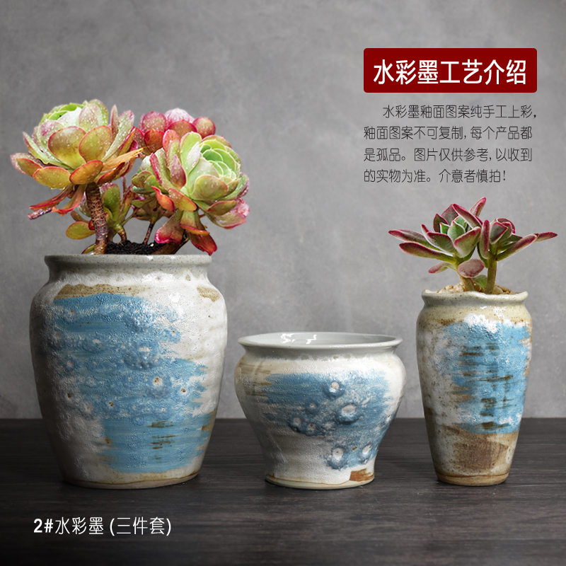 多肉花盆陶瓷肉肉植物法师老桩盆透气组合盆器陶罐创意水彩墨花盆