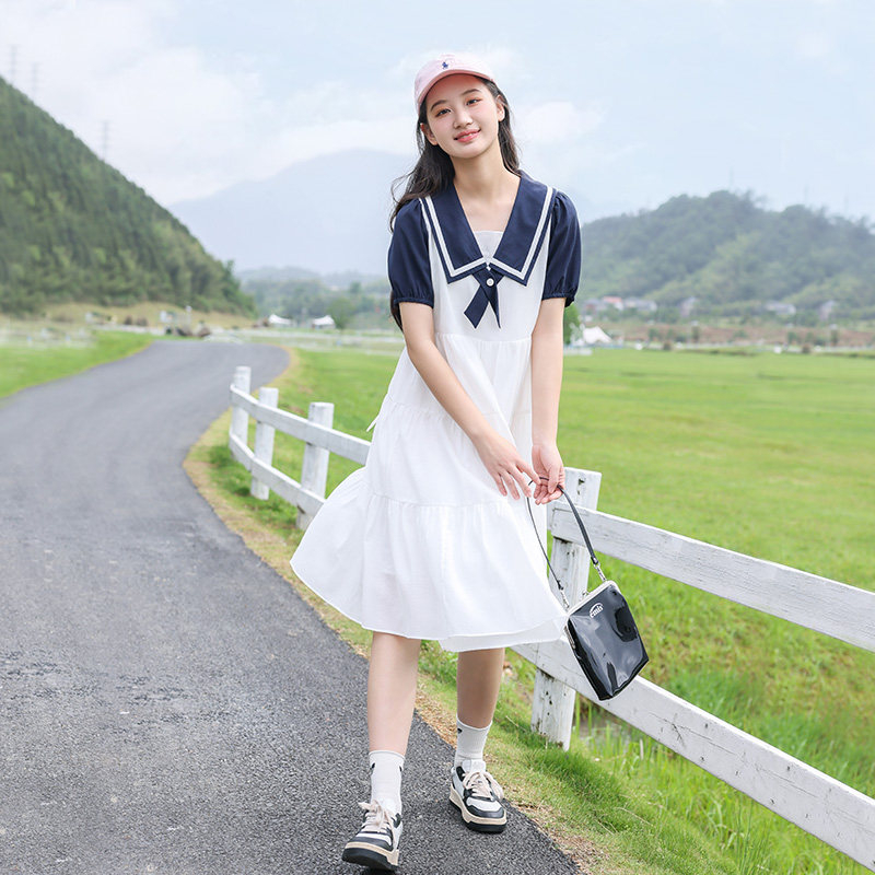女大童连衣裙夏季2024新款洋气时髦15岁初中学生夏装薄款白色裙子